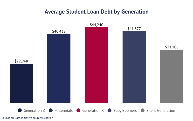 - $40,570 is the mean average student loan debt for the past decade when adjusted for inflation.