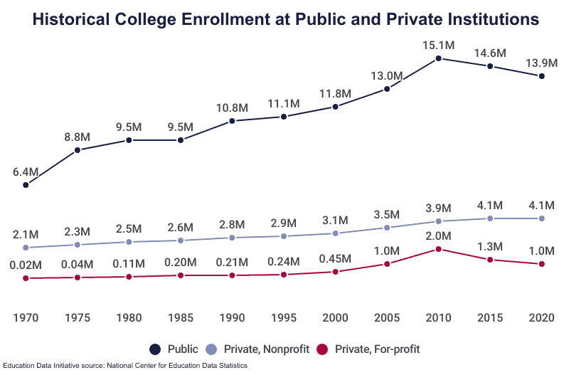 - Between 1970 and 2010, enrollment increased 247.3%.